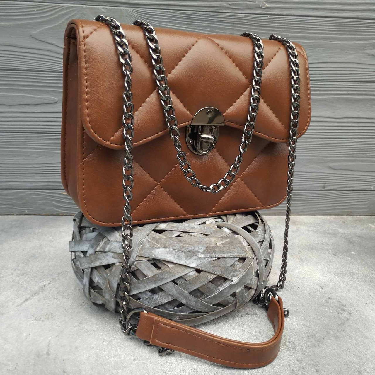Сумочка жіноча стьобана з ремінцем ланцюжком 21*16 см Nata Рудий
